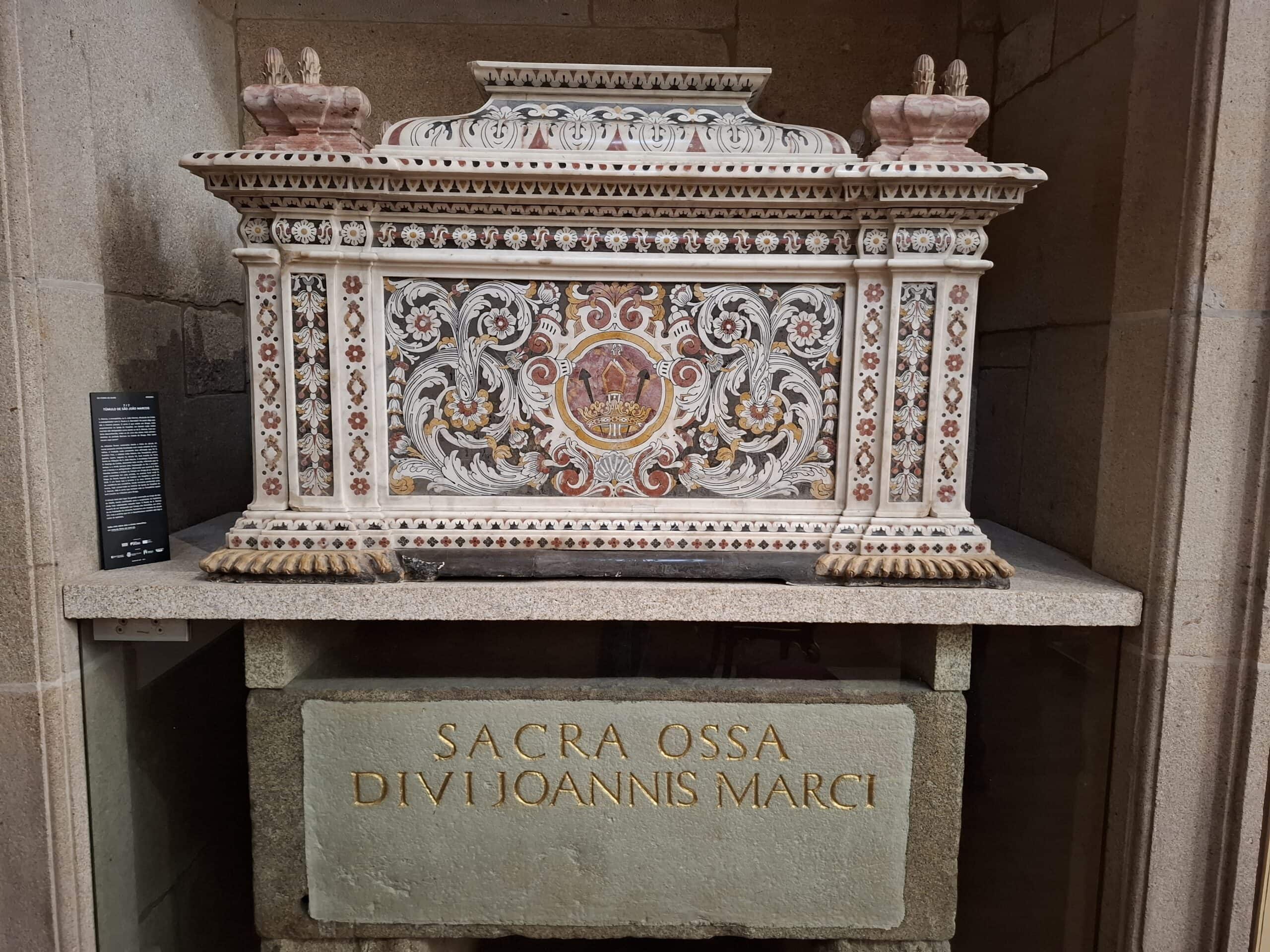 A Igreja remonta ao século XII, tempo em que teria sido a ermida do Espírito Santo e teria pertencido, juntamente com um convento, à Ordem do Templo. No século XVI, o edifício iniciaria o seu funcionamento como um hospital, sob a iniciativa do arcebispo D. Diogo de Sousa. As relíquias passaram a ocupar o no arco sólio da capela-mor a partir do século XVIII (antiga capela do hospital), quando o arcebispo D. Rodrigo de Moura Teles promove a transladação das relíquias de São João Marcos para um sepulcro de mármore, mandado fazer em Roma (1718). Atualmente, a maior parte delas encontra-se conservada na Basílica de São Marcos, em Veneza.
