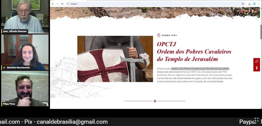 No serão do dia 01 de abril de 2026, a Associação Ordem dos Pobres Cavaleiros do Templo de Jerusalém – OPCTJ, na pessoa da Secretária Geral Mafalda Nascimento, esteve em direto no Canal de Brasília, a convite do Presidente da parceira Associação Thomar Honoris Filipe Pires.
